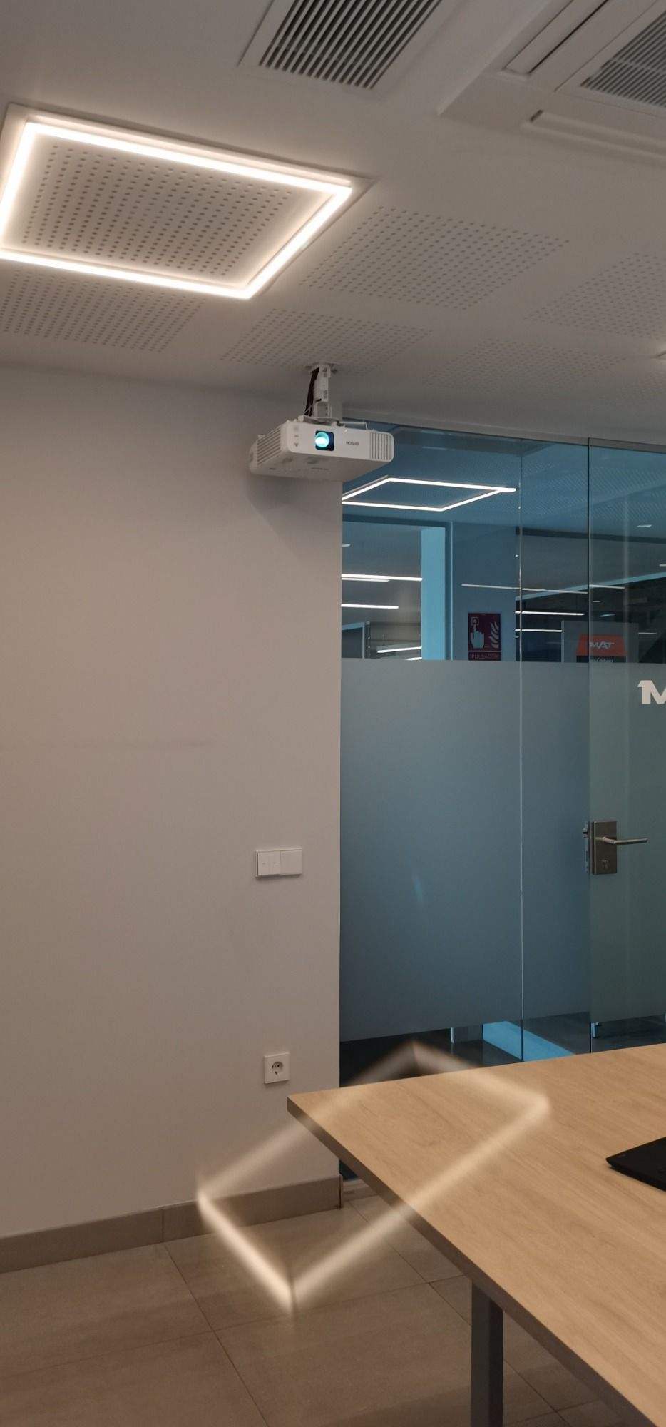 Proyector EPSON láser instalado en un ascensor de techo.