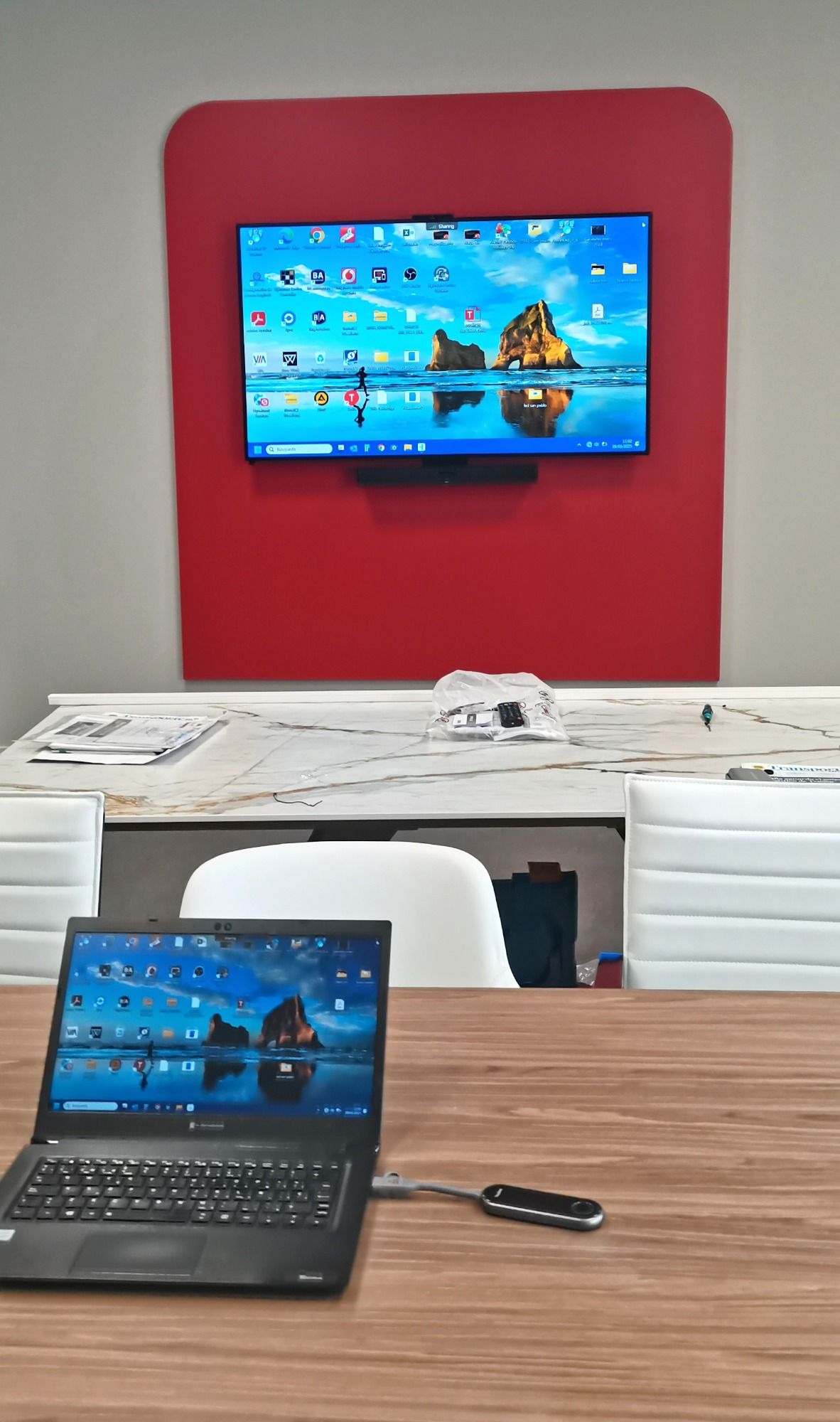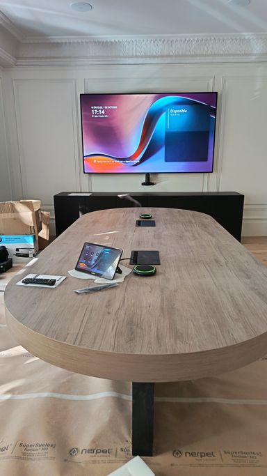sistema compuesto por un monitor de 72" una videoconferencia Logitech Rally Bar y una tap.