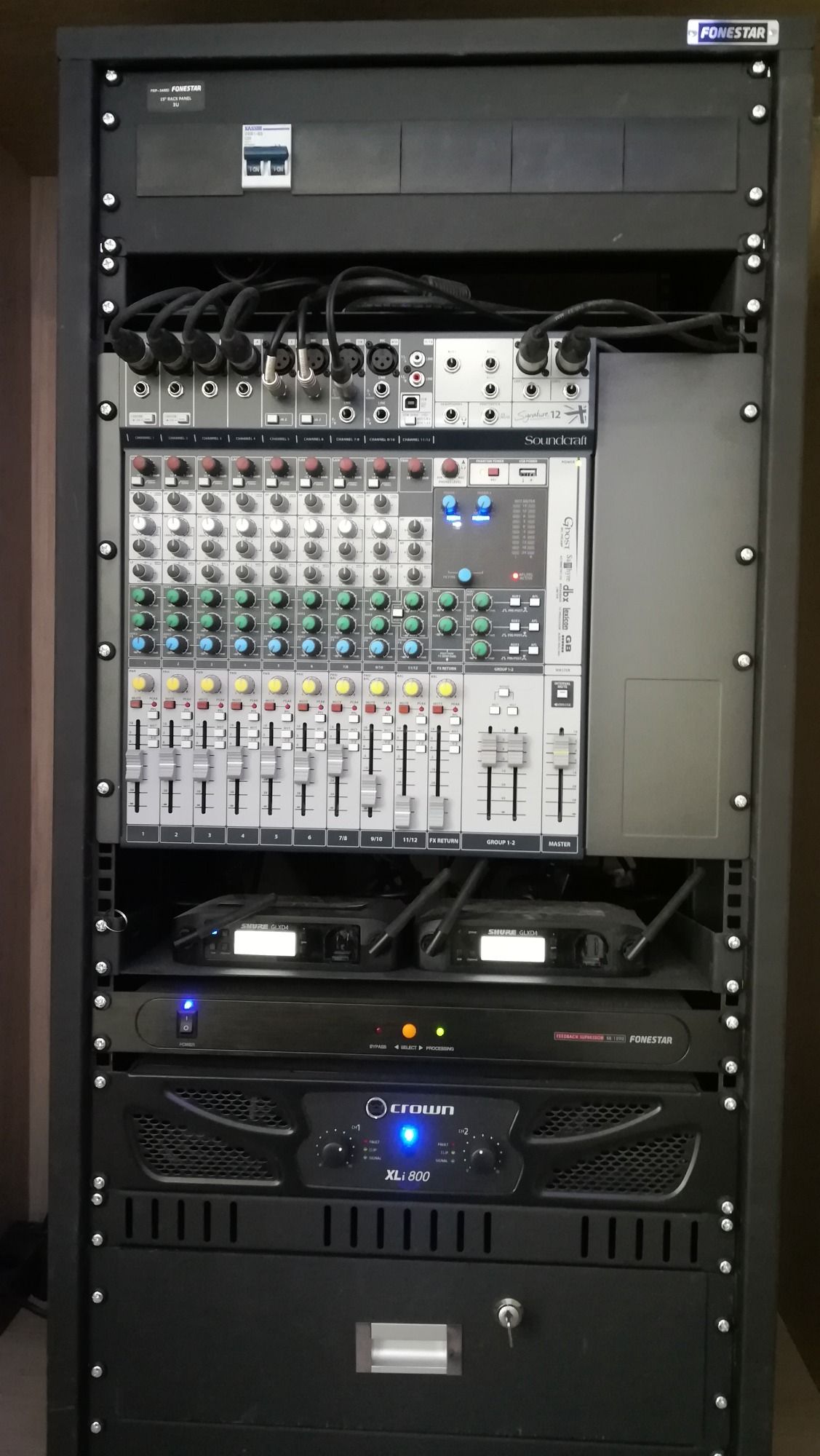 Estos sistemas suelen incluir, etapas de potencia, amplificadores, mesas de mezclas, micrófonos, altavoces, etc.